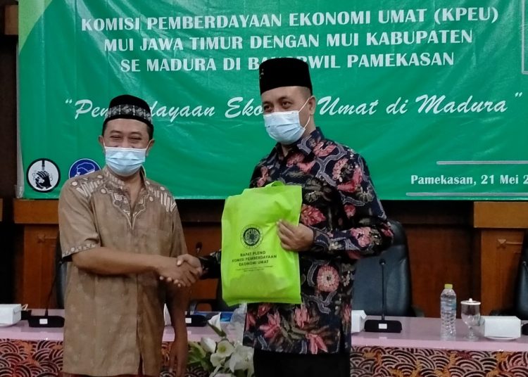 Setelah melakukan survei ketahanan pangan di empat kabupaten di wilayah Matraman menjelang lebaran yang lalu, kali ini ganti menyasar pulau Madura. Komisi Pemberdayaan Ekonomi Umat (KPEU) MUI Jatim bertemu dengan para pengurus MUI empat kabupaten di pulau garam tersebut. Pertemuan konsolidasi tersebut dilaksanakan di Bakorwil Pamekasan pada Jumat (21/05/2021).