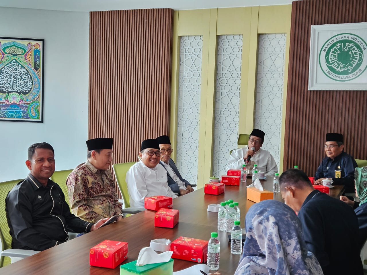 Majelis Ulama Indonesia (MUI) Provinsi Jawa Timur menerima audiensi Pengadilan Tinggi Agama (PTA) Surabaya, Selasa (05/08/2025). Kegiatan tersebut berlangsung di Kantor MUI Jawa Timur Jl. Raya Wisma Pagesangan No. 204 Surabaya. Acara dihadiri langsung oleh Ketua MUI Jatim Drs. KH. M. Jazuli Nur, Lc., dan Dr. KH. M. Sudjak, M.Ag., Sekretaris Dr. H. M. Hasan Ubaidillah, S.HI., M.Si, serta Bendahara H. Rasidi, S.E. Selain itu, rombongan audiensi dipimpin oleh Ketua PTA Surabaya, Dr. H. Zulkarnain, S.H., M.H., bersama jajarannya.