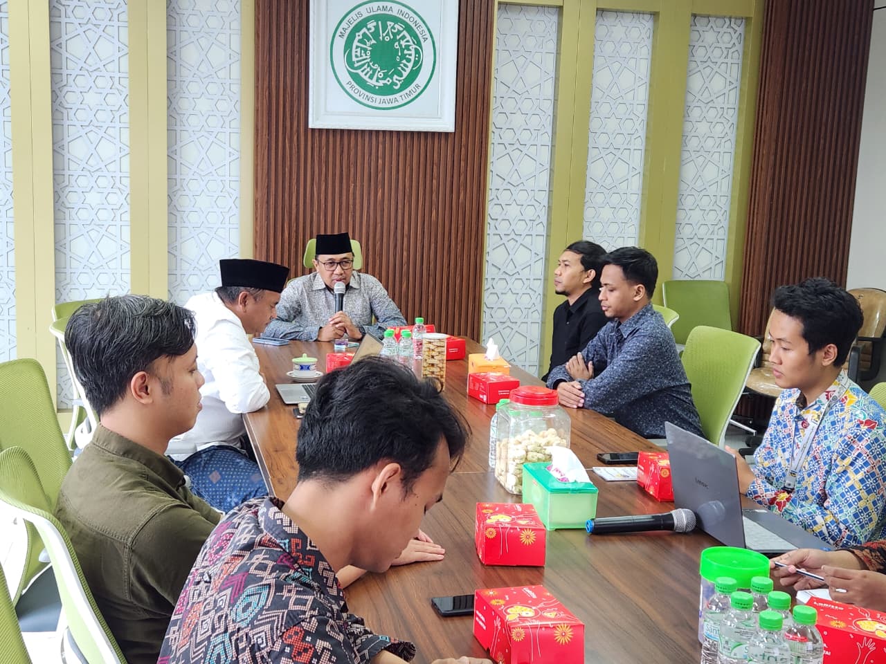 Komisi Fatwa Majelis Ulama Indonesia (MUI) Provinsi Jawa Timur menerima audiensi dari Pusat Riset Rekayasa Molekul Hayati (BIOME) Universitas Airlangga (Unair) dan Pusat Halal Unair terkait permohonan fatwa kesesuaian syariah atas tiga produk enzim hasil riset mereka. Pertemuan berlangsung di Kantor MUI Jawa Timur pada Senin (27/10/2025) dan dipimpin langsung oleh KH Sholihin Hasan, Sekretaris Komisi Fatwa MUI Jatim.